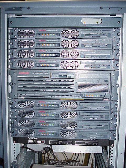The Computer Science Department recently purchased a Compaq multiprocessor. This state-of-the-art cluster system is comprised of eight compute nodes and one head node. Each node is an Alphaserver DS10L powered by a Compaq EV67 processor running at 600 Mhz and has 512MB of RAM, total of 4.5GB of memory for the entire system. Compute nodes and the head node are interconnected by a fast Myrinet switch with each channel operating at 2.1Gb/s. At the peak rate the system will be able to handle over 5 billion floating-point operations per second. The system is housed in the MCEC building and will be used for teaching and research in science and engineering.
