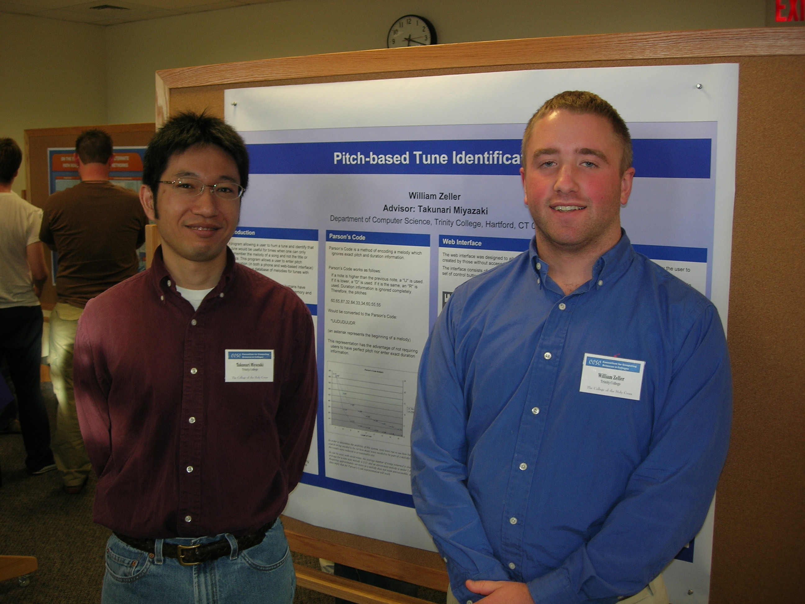 Bill Zeller won the Travelers Prize for the best senior project for his project titled "Pitch-Based Tune Identification". Bill also presented a poster based on his project at the 2006 CCSCNE conference (photo).