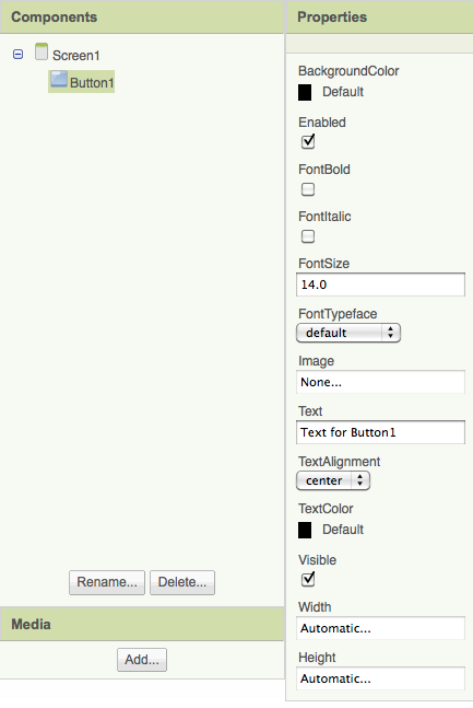 - A component's properties can be set either in the Viewer or in the Blocks Editor using built-in blocks: