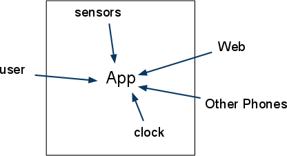 - Events include things like a button-click, the receipt of a text message, movement of the phone in 3-D.