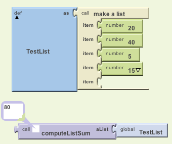 Procedural Abstraction: Notice how the ButtonNewList.Click blocks calls the MakeList procedure, which handles the app's list making operations. Using a named procedure here makes the app easier to understand and easier to modify and debug.