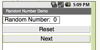 two buttons. Let's have the "next" button simply generate a random integer and display