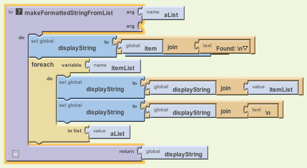 Note that this handler has two arguments, the tagFromWebDb and the valueFromWebDB. If the program were making lots of different queries, you would want to test which tag is being retrieved and take different actions for different tags. But in this case all our retrievals are of the form "shopping-X" and we are going to take the same action in each case.
