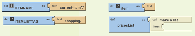 Note that this handler has two arguments, the tagFromWebDb and the valueFromWebDB. If the program were making lots of different queries, you would want to test which tag is being retrieved and take different actions for different tags. But in this case all our retrievals are of the form "shopping-X" and we are going to take the same action in each case.