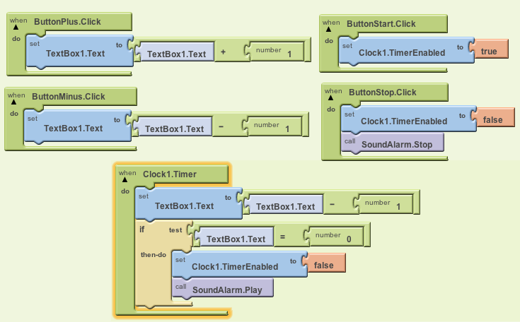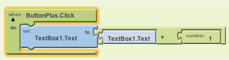 Select the Set TextBox1.Text block and plug it into the When ButtonPlus.Click.do slot.