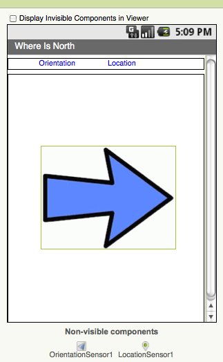 This app uses two invisible components, an OrientationSensor and a LocationSensor, in the Sensors drawer. Drag each of these onto the Viewer.
