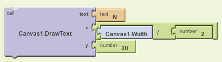 To make the Canvas1.Width / 2 expression for the text slot, look for the Division block and the Number block in the Math drawer. Snap them together as shown in the above figure.