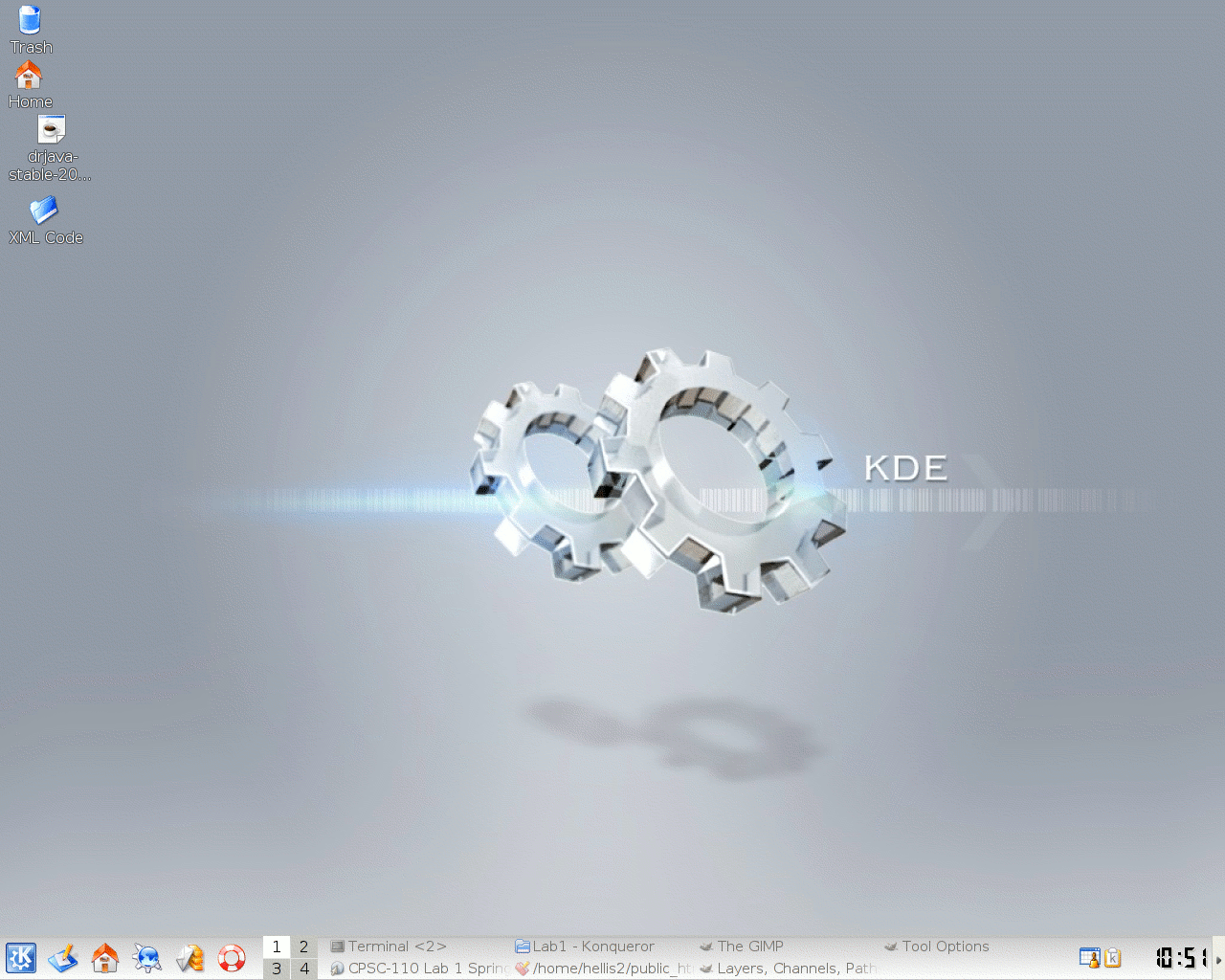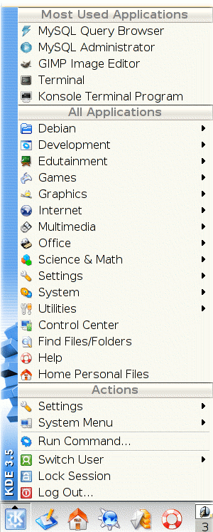 (which is reached via the KDE icon panel). The KDE panel and menu are