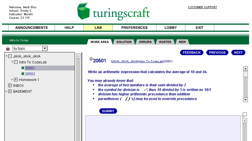 At this point you can now access the system. In order to familiarize yourself with CodeLab, you will complete a few CodeLab exercises:
