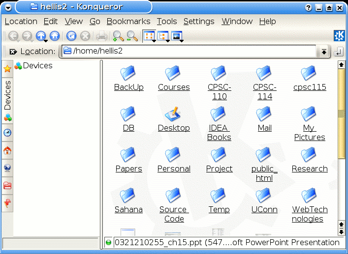 - Click the Personal Files icon (which looks like a house) on the KDE panel. This will open the file manager window in your home directory:
